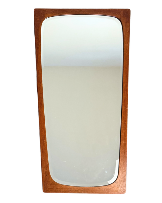 Mid-Century Made in Denmark Tapered Teak Bevelled Edge Mirror, 1960s