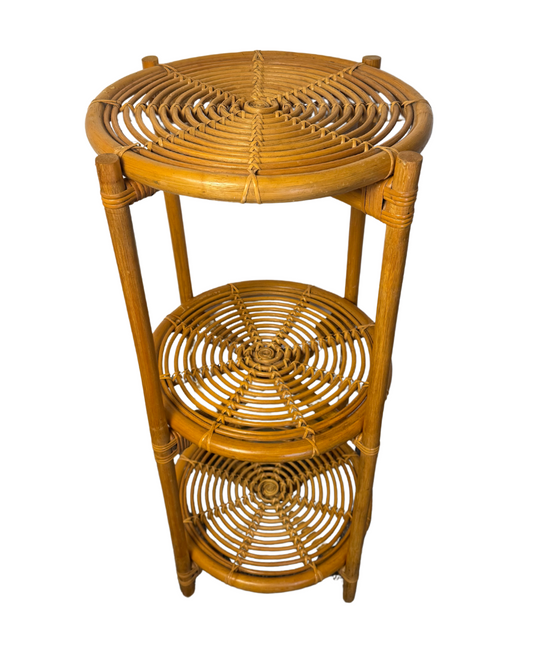 Vintage Mid-Century Cane Three-Tier Plant Stand
