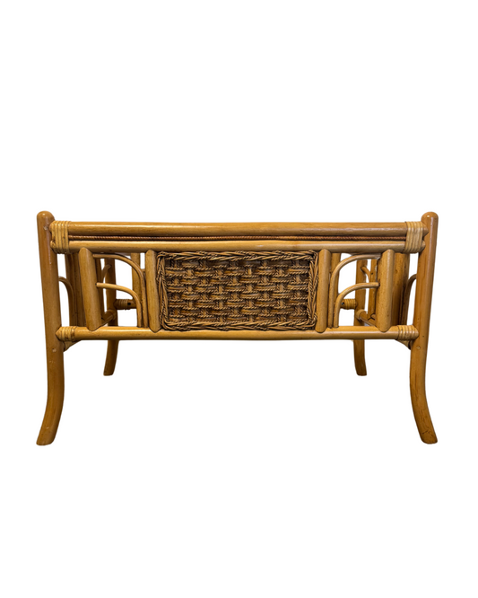 Vintage Tiki Boho Style Glass Top Cane Coffee Table with Woven Panels