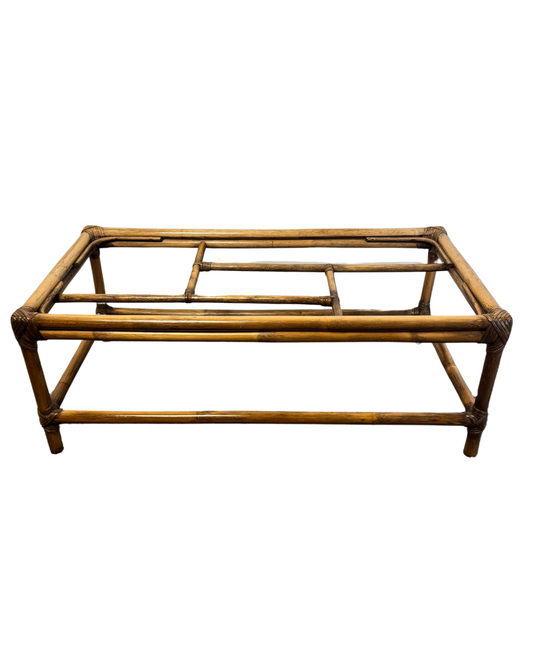Mid-Century Vintage Smoked Glass Top Low Bamboo Coffee Table. 1960s/70s
