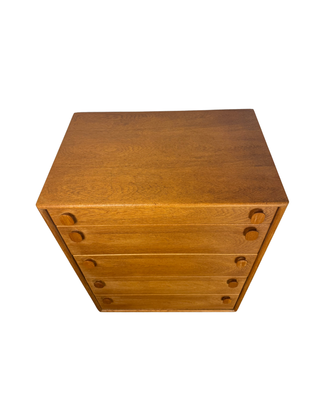 This Mid-century oak chest of drawers was designed by Peter Liley for Meredew Furniture in England in the early 1970s.