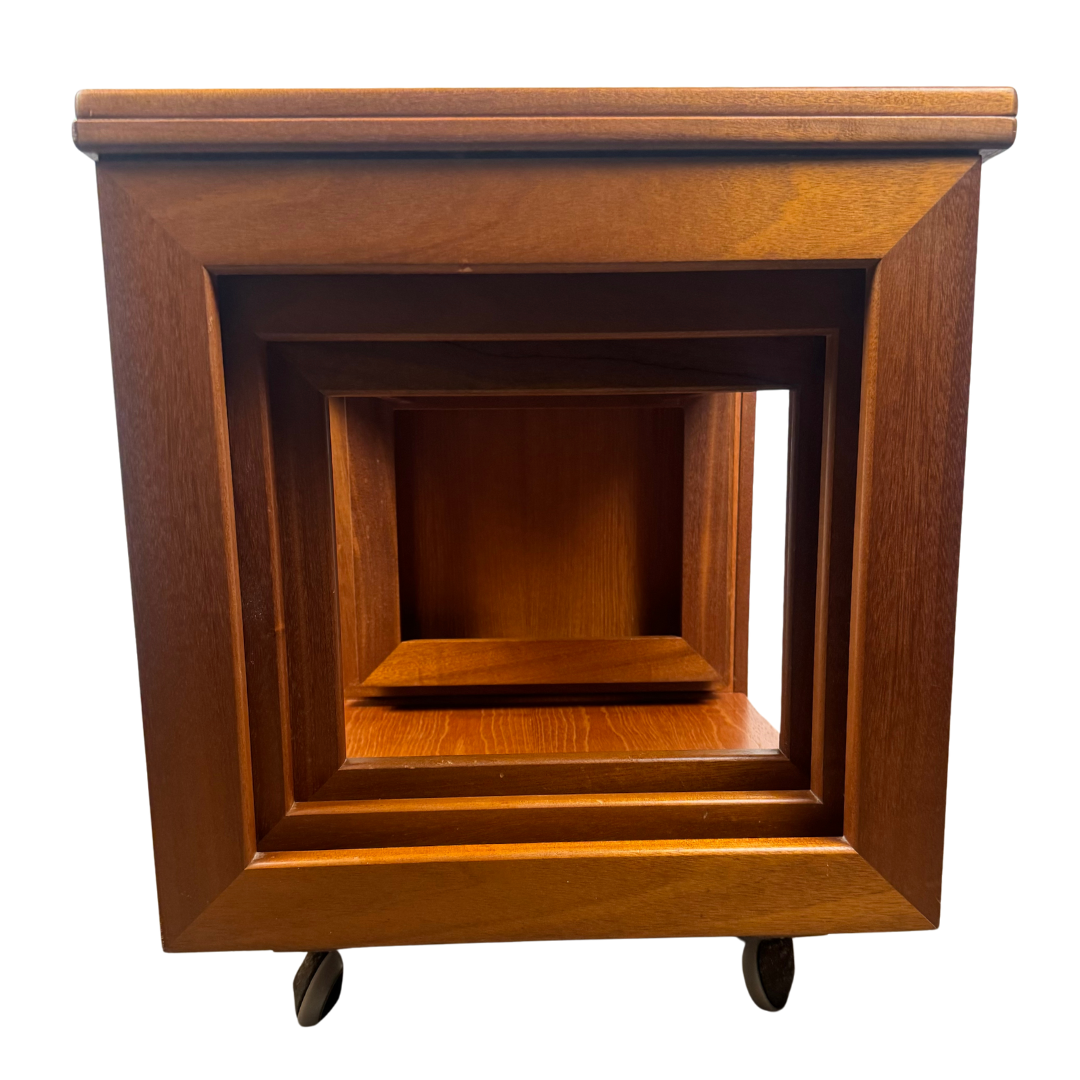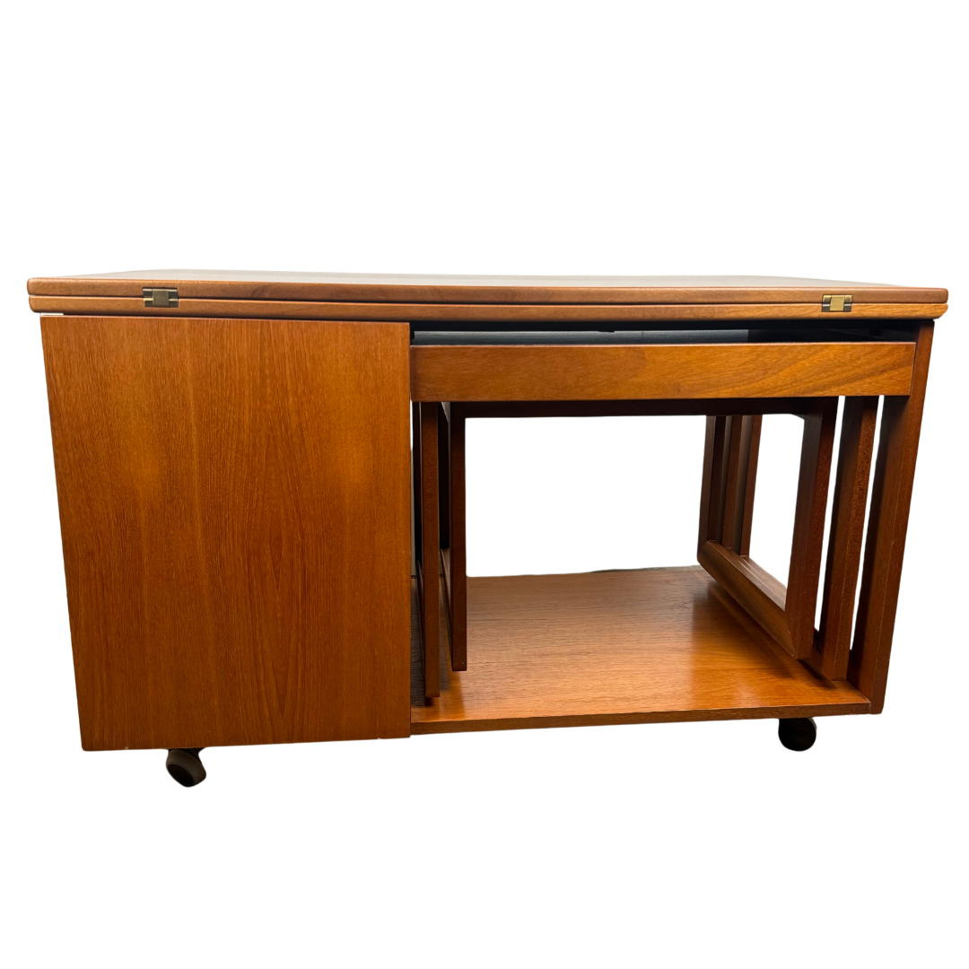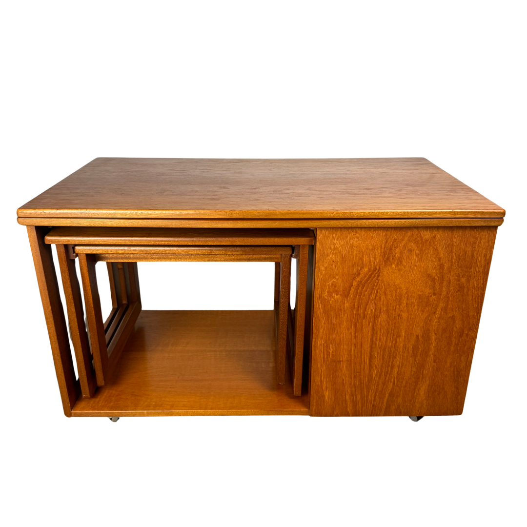piece integrating a nest of two tables and a cabinet neatly under an extending coffee table. The Tristor is also fitted with castors for easy manoeuvrability.