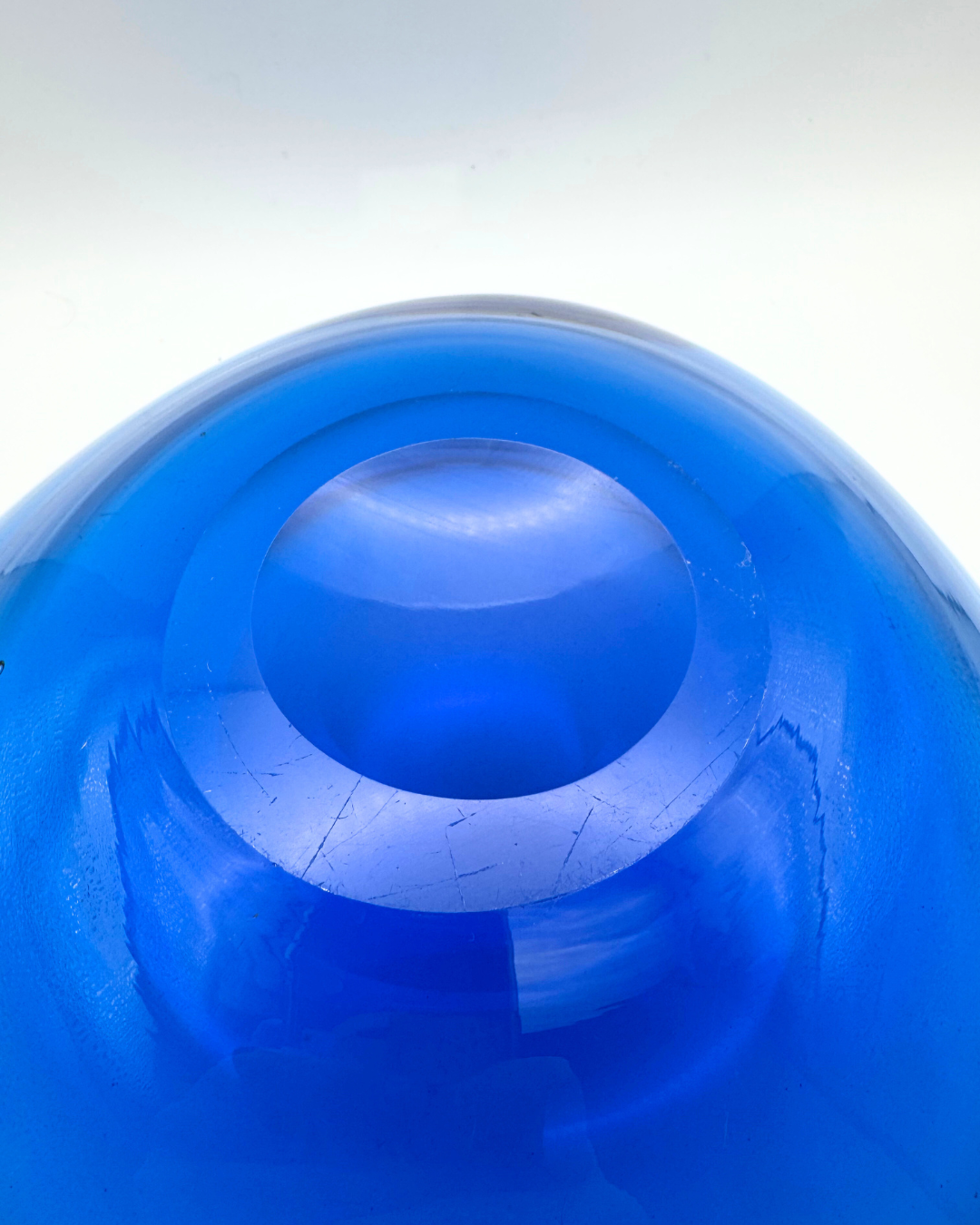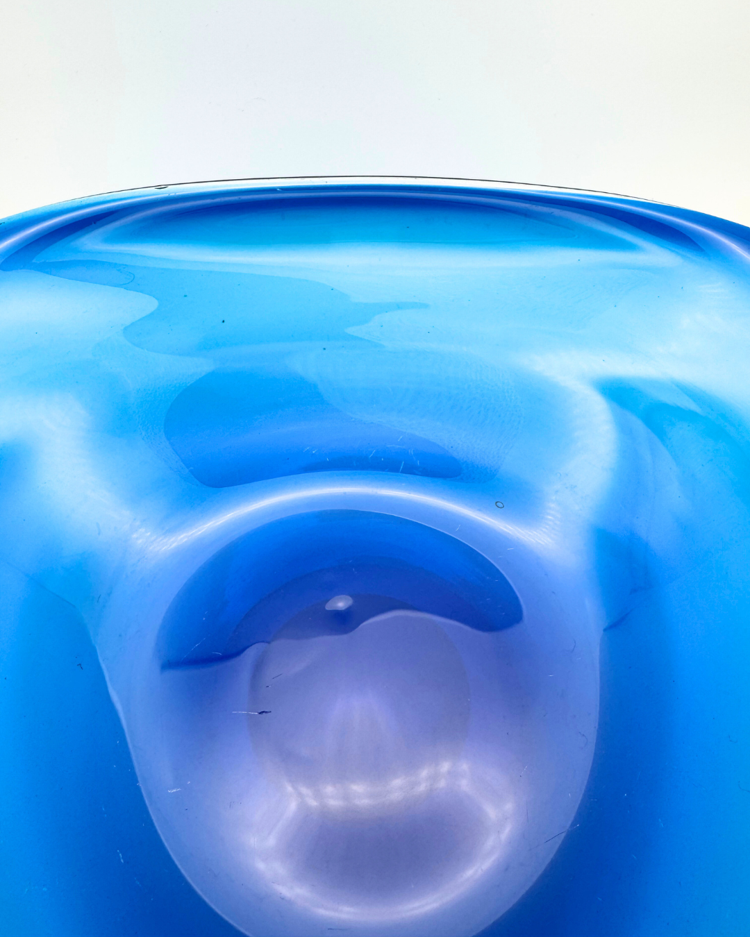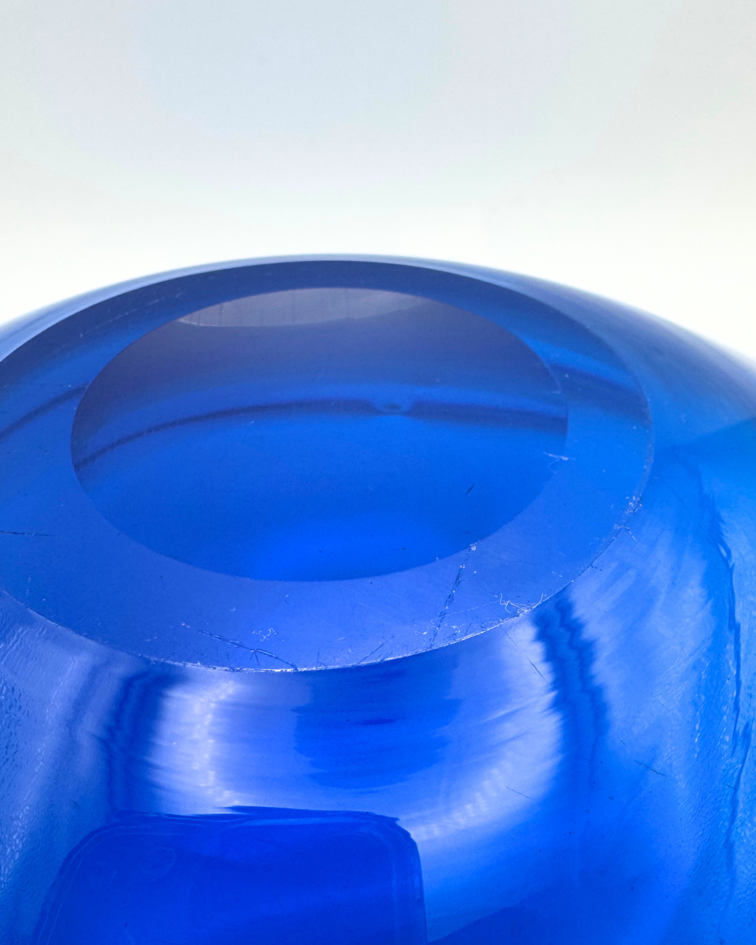 Due to the nature of creating art glass, pieces may exhibit inclusions or imperfections in their form. Pieces may also include minor fleabites, light marks or light scratches to the surface of the glass which are impossible to highlight in the photography.