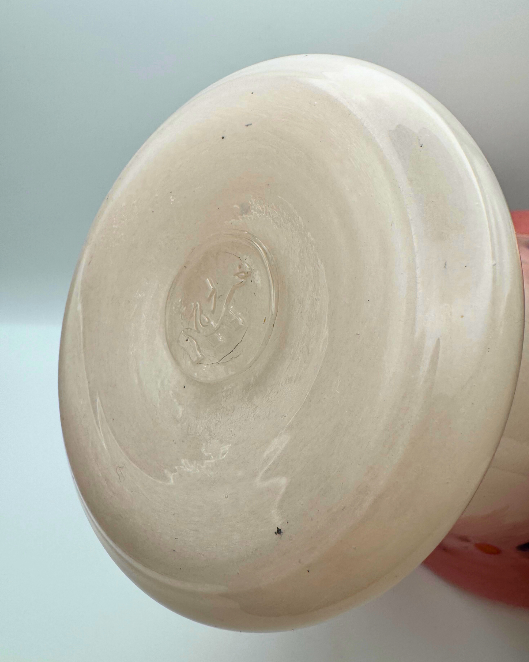 A Strathearn V022 7½" Vase White & Pink with Molten Murriles. Made in Scotland, 1960s/70s.