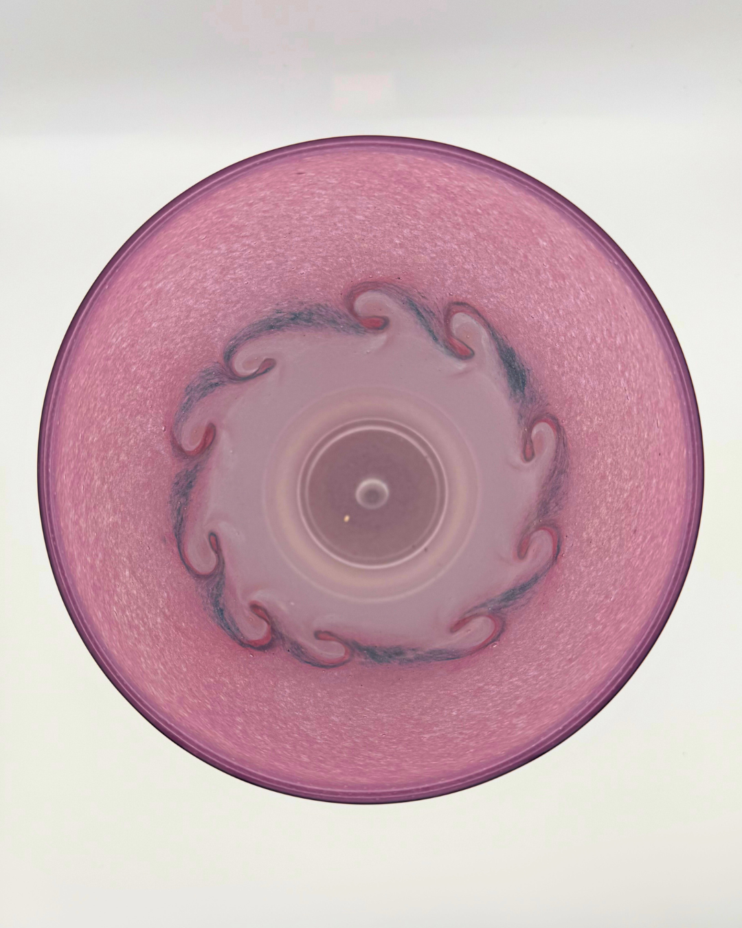 Due to the nature of creating art glass, pieces may display inclusions or imperfections in their form. They may also feature minor fleabites, light marks, or slight scratches on the surface of the glass, which are difficult to capture in photographs.