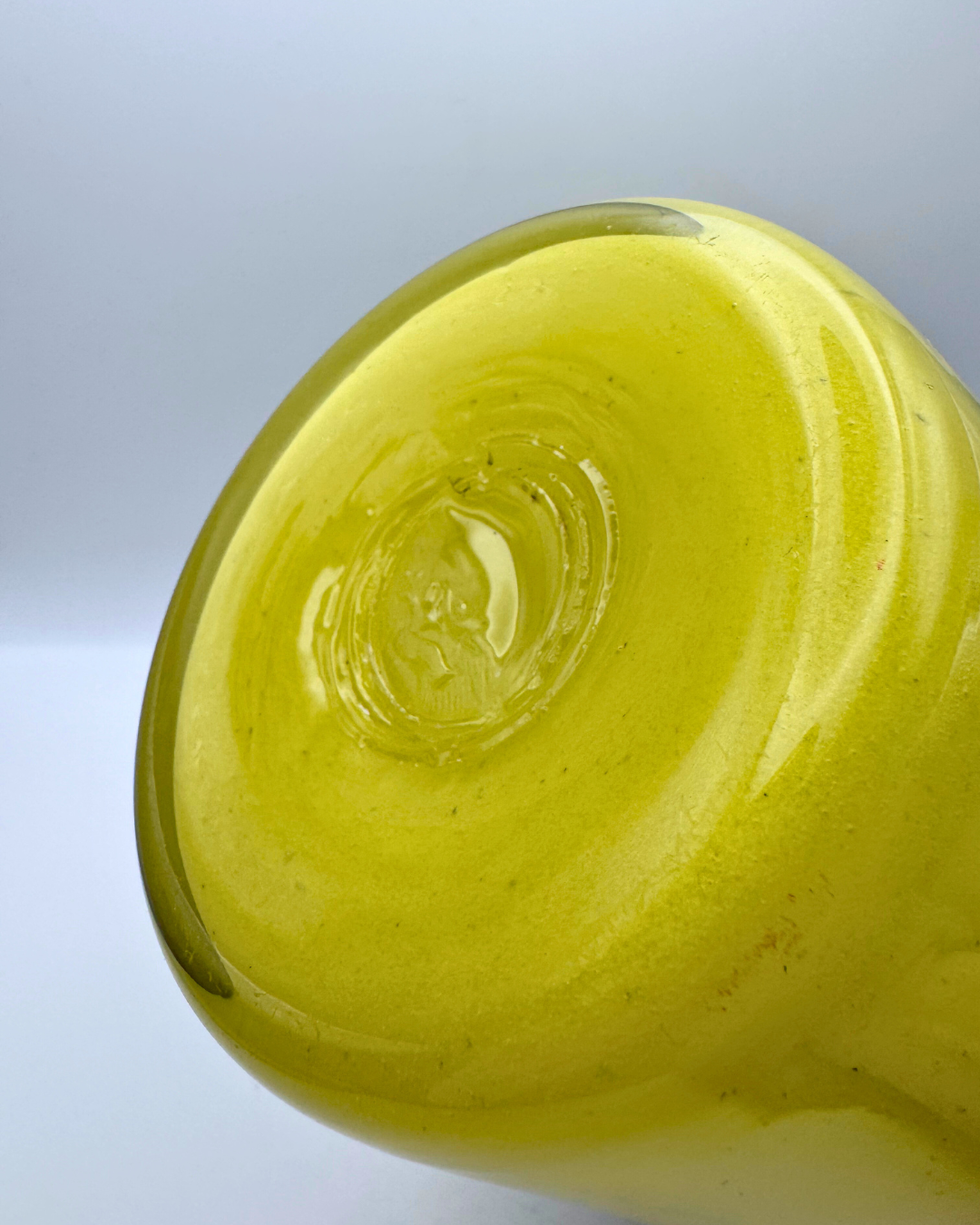 Due to the nature of creating art glass, pieces may display inclusions or imperfections in their form. They may also feature minor fleabites, light marks, or slight scratches on the surface of the glass, which are difficult to capture in photographs.
