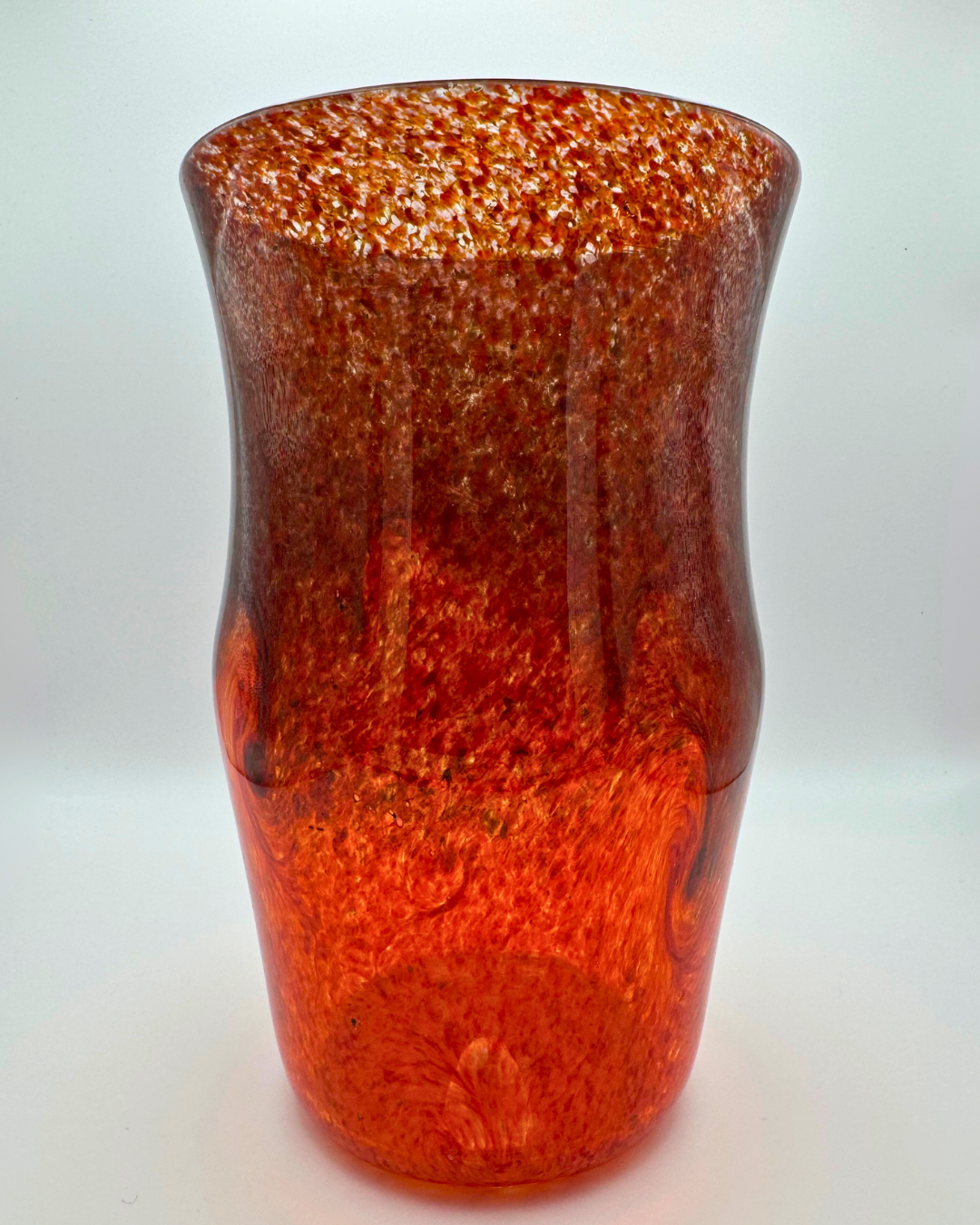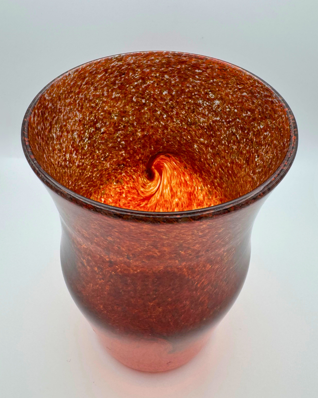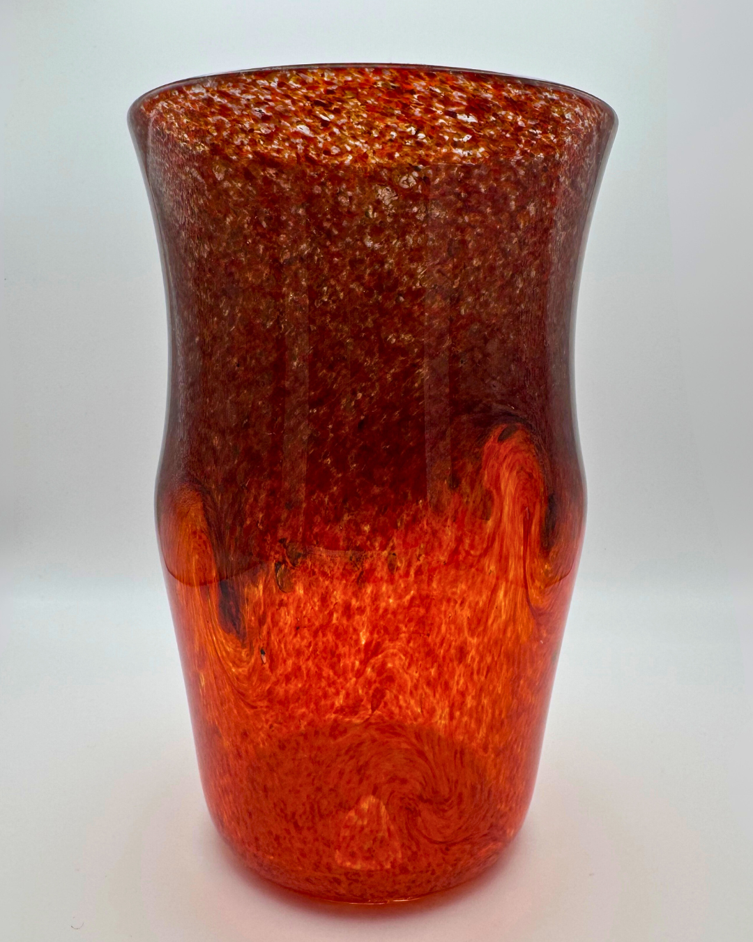 A Strathearn V005 7½" Vase in Black & Red with Molten Swirl. Made in Scotland, 1960s/70s.