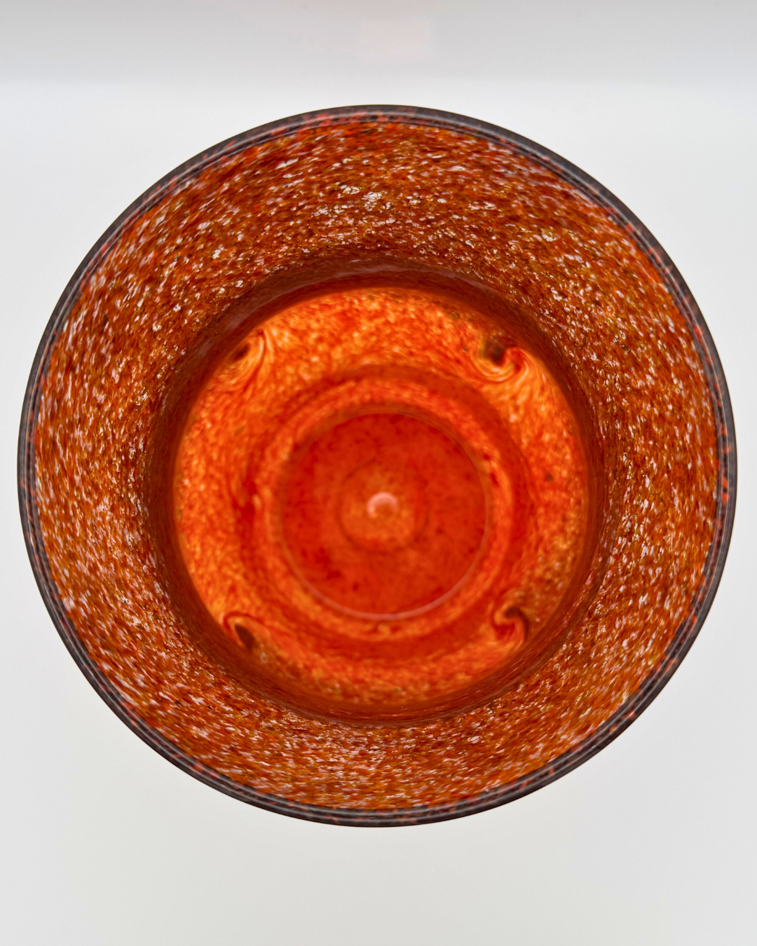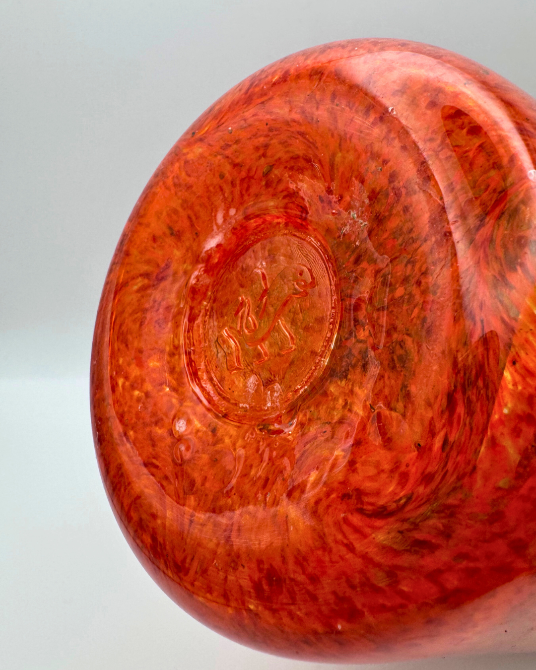 Due to the nature of creating art glass, pieces may display inclusions or imperfections in their form. They may also feature minor fleabites, light marks, or slight scratches on the surface of the glass, which are difficult to capture in photographs.
