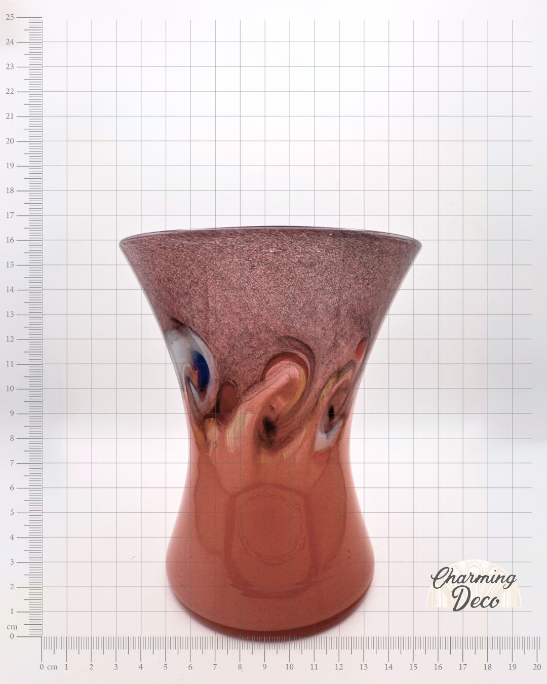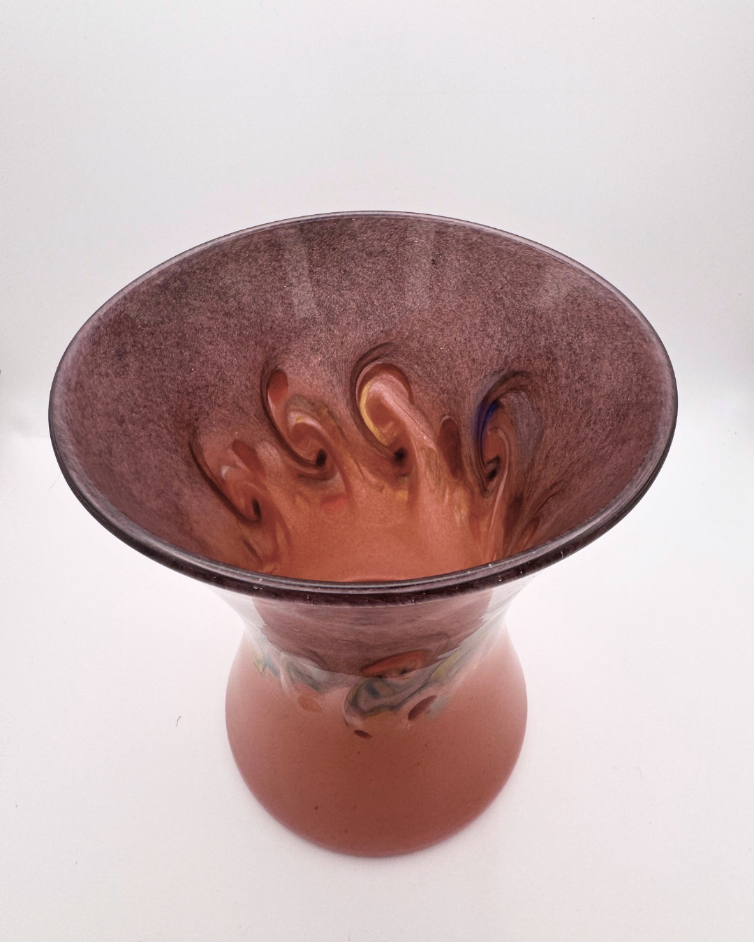 A Strathearn V010 6½" Vase in Black & Salmon with Molten Murriles, Made in Scotland, 1960s/70s.