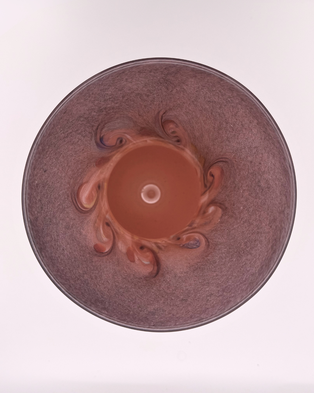 Due to the nature of creating art glass, pieces may display inclusions or imperfections in their form. They may also feature minor fleabites, light marks, or slight scratches on the surface of the glass, which are difficult to capture in photographs.